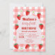 Une invitation très mignonne à la fête de premier anniversaire à thème fraise. Customisez les détails et faites-le vous-même ! Cette collection de créations propose un décor d'anniversaire, des cadeaux et des cadeaux.