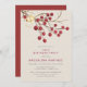 Belle invitation d'anniversaire rustique chic pour une fête d'anniversaire d'hiver. Il présente des baies rouges sur une branche nue ornée d'une cloche dorée et d'une ficelle.
