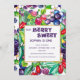 Cartes d'invitation d'anniversaire Fun Berry Sweet avec une variété de baies dessinées à la main à l'aquarelle dans des couleurs vives et juteuses. Personnalisez facilement avec vos propres détails