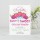 Berry Sweet 2nd Birthday Invitation - éditable modèle est facile à personnaliser pour une petite fille de 2 ans. Le design présente des baies mignonnes et colorées - fraise, framboise et bleuet - avec une typographie à la main et fantaisie. Le dos de l'invitation a des bordures roses en vichy de baies plus délicieuses.