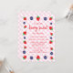 Berry douce invitation anniversaire avec fraises et bleuets avec un damier arrière - plan de style pique-nique.