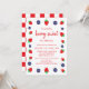 Berry douce invitation anniversaire avec fraises et bleuets avec un damier arrière - plan de style pique-nique.