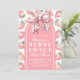 A cute and girly “Berry Sweet” baby shower theme featuring watercolor pink strawberries with green leaves. A blush pink arch sits at the center, topped with a soft pink watercolor bow for a sweet coquette touch. The typography mixes white handwritten script, bold serif, and simple fonts for a playful yet polished look.