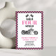 BESOIN DE QUATRE VITESSE ROSE LOURD VÉLO FILLE ANNIVERSAIRE INVITATION. NOIR ET ROSE SUPER À DAMIERS MOTIF RETRO STYLE ÉDITABLE INVITATION ANNIVERSAIRE DE ENFANT