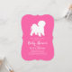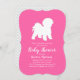 Inclure le grand frère ou la soeur en fourrure bébé dans la célébration avec cet adorable design de baby shower Bichon Frise! Parfait pour un amoureux du chiot avec un bébé en route. Le Bichon Frise se trouve à côté d'un adorable chariot vintage. Le rose en fait un endroit parfait pour une petite fille en route !