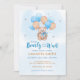 Invitation de Baby Shower Bientôt Bébé avec ours en aquarelle et ballon bleu. Articles assortis disponibles.