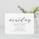 Cette invitation de la partie à participer comporte les mots "bientôt M. & Mme" dans un script moderne écrit en noir avec un arrière - plan d'aquarelle noir sur le dos.