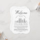 Une carte d'informations pour les invités unique, adaptée à vos invités de mariage voyageant pour vous voir dans la belle ville de Philadelphie, en Pennsylvanie. Elle comporte une illustration moderne de style art déco de la skyline de la ville au recto, suivie d'espaces pour vos informations uniques de mariage au verso. Tous les éléments de cet article sont déverrouillés et ajustables pour répondre à vos besoins. Amusez-vous à le personnaliser.