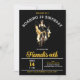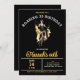 Chic Roaring 20 Anniversaire de l'invitation montre une fille flapper dansant dans le centre. Les couleurs audacieuses, noir, or et blanc qui attirent l'oeil seront certainement source d'excitation lorsque vos invités reçoivent leur invitation.