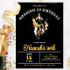Chic Roaring 20 Anniversaire de l'invitation montre une fille flapper dansant dans le centre. Les couleurs audacieuses, noir, or et blanc qui attirent l'oeil seront certainement source d'excitation lorsque vos invités reçoivent leur invitation.