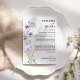Cette belle carte de remerciement fleur sauvage violet présente une calligraphie couleur eau de fleur sauvage et est idéale pour un mariage moderne. La superbe typographie noire du design minimaliste romantique sur un arrière - plan blanc présente un aspect simple et propre. Placez ces cartes à chaque table à l'arrivée de vos invités pour la réception de mariage.