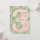 Cool moderne rose et vert troisième anniversaire invitation, comprend grand numéro trois, avec votre texte de partie personnalisée à l'intérieur du nombre. Invitations amis et famille à votre monumental jalon fête!