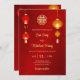 Cet élégant faire-part de mariage chinois est orné de lanternes chinoises et d'un double symbole de bonheur rond d'or sur un arrière - plan floral roux chatoyant. Noms de mariée et de mariée dans un script élégant. Avec un texte à l'envers en chinois.