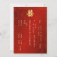 Cette version a un TON ROUGE PLUS LÉGER. Le rouge foncé de la stationnaire ne correspond pas à cela. Cet élégant faire-part de mariage chinois est orné d'un double symbole de bonheur artistique en or sur un arrière - plan floral rouge rubis chatoyant. Noms de mariée et de mariée dans un élégant script manuscrit. Avec un texte à l'envers en chinois.