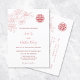 Cette invitation de mariage chinoise moderne présente un symbole de double bonheur rose poussiéreux et des fleurs d'art linéaire rose poussiéreux sur un fond blanc. Noms des mariés dans un script manuscrit élégant. Invitation de mariage chinois ou invitation à la cérémonie du thé. Avec un texte traditionnel chinois au verso.