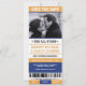 Les invitations de sauvegarde de date sur le thème du billet de sport sont cool et amusantes ! Elles ressemblent à un billet de sport pour célébrer l'événement de la saison. La palette de couleurs est en bleu et jaune. Contactez pour des couleurs personnalisées.