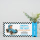 Faites plaisir à votre petit speedster avec notre Blue Racing Car Birthday Invitations unique, parfait pour le bain d'anniversaire de n'importe quel garçon! Conçu pour ressembler à un ticket "Admit One" classique, chaque invitation présente une illustration charmante d'un petit garçon qui zoomait dans sa voiture de course bleue. L'arrière - plan est doté d'un remarquable motif à damiers noir et blanc, reflétant l'emblématique drapeau de la ligne d'arrivée en course automobile.