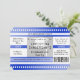 5x7 Billet découpé bleu cobalt royal bleu brillant avec invitation grise et blanche entièrement personnalisable pour votre fête de fin d'études ou journée portes ouvertes. Fond avec divisions et sections blanches, avec un texte de style numérique imprimé par ordinateur.