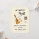 Créez le décor pour une soirée inoubliable avec ce carton d'invitation de style billet pour une soirée acoustique. Conçu pour ressembler à un véritable laissez-passer d'événement, ce modèle présente une illustration de guitare, des notes de musique, des détails sur les places, ainsi qu'une zone de code QR pour une expérience de concert moderne.