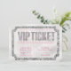 Cette magnifique invitation à la fête personnalisée présente un style hollywoodien à l'aspect étincelant. Une bordure de parties scintillant en argent encadre l'invitation. Les mots Billet et VIP sont imprimés dans un motif diamant. Les diamants roses mettent l'accent sur les zones de texte. L'arrière - plan est un faux design luxueux.