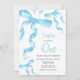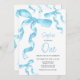 Invitation d'anniversaire avec l'arc coquette bleu aquarelle.