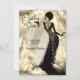Invitation Birthday Party Cream Gold Black Dress Feathers
