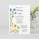 This birthday invitation features charming watercolor illustrations of blue bachelor buttons and vibrant yellow coneflowers, beautifully accented by lush green leaves. The colorful floral design is perfect for creating a warm and inviting atmosphere at any relaxed summer birthday celebration.