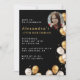 Black 17e anniversaire invitation Gold Balloon Photo calligraphie typographie féminine jalon classique élégant glam