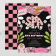 Invitation Black and Pink Retro Daisy Spa Party Birthday