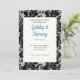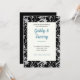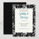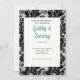Invitation Mariage damassé noire avec lettrage noir et Turquoise.