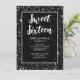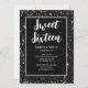 Personnalisez et customisez l'invitation fausse moelleuse Sweet 16. Sweet sixteen collection par PLdesign : Belle girly glamour noir foncé brillant parties scintillant scintillantes Invitation. Photo de la parties scintillant aux étincelles foncées !