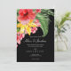 Cette invitation de mariage moderne et élégante Black Beach Tropical Destination est idéale pour les couples qui veulent ajouter une touche d'exotisme à leur grand jour. Le design coloré présente de magnifiques fleurs et des éléments botaniques évoquant la beauté naturelle d'un paradis tropical. Le décor noir de l'invitation contraste magnifiquement avec les fleurs vibrantes, ce qui en fait un design frappant et attrayant. Le design unique de cette belle suite de faire-part de mariage est sûr de faire une déclaration et d'exciter vos invités pour la célébration. Le texte est entièrement personnalisable, ce qui vous permet d'ajouter votre touche personnelle et de la rendre réellement vôtre. Commandez maintenant et faites de votre mariage tropical rêve une réalité!