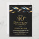 Invitation Black Blue Gold 90e fête d'anniversaire