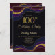 Célébrez dans le style. Invitation vos amis et proches à votre 100e anniversaire avec cette invitation élégante, avec un design rayé moderne. La zone de texte personnalisable de ce modèle d'invitation vous permet d'inclure sans effort tous les détails nécessaires à votre fête d'anniversaire, y compris la date, l'heure, le lieu et les informations RSVP. Une variété de types de papier et de styles d'angle sont disponibles pour vos invitations uniques, ainsi que l'option de téléchargement si vous préférez un format numérique.