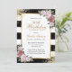 Elégante invitation à fêter des fleurs roses et des fleurs blanches et noires et dorées encadrant les détails de la fête d'anniversaire à l'intérieur d'un cadre doré contre un arrière - plan noir et blanc orné de confettis dorés. Invitation à l'anniversaire floral floral. Invitation d'anniversaire blush et or. Invitation d'anniversaire rose et or. Invitation d'anniversaire rose. Invitation d'anniversaire en noir et or. Invitation d'anniversaire en noir et blanc. Personnalisez facilement ce modèle à n'importe quelle fête d'anniversaire.