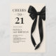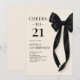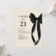Coquette style black birthday invitation featuring an elegant bow design to celebrate a 21st birthday milestone. Designed to create a chic and sophisticated look while keeping details clear and stylish. Ideal for 21st birthday parties, cocktail celebrations, and milestone gatherings. Editable text. Clean print-ready layout.