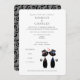 Fabuleuses invitations de mariage design élégant mais amusant avec de mignons chats noirs chanceux habillés comme les deux gays mariés; au verso est un motif en peau de bêtes noir et gris, donc cool