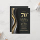 Invite your friends and loved ones to your 70th birthday celebration with this modern black and gold invitation. The customizable text area in this invitation template allows you to include all the necessary details for your special birthday celebration, including the date, time, venue, and RSVP information. A variety of paper types and corner styles are available for your unique invitations, along with the option to download if you prefer a digital format.