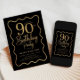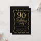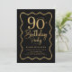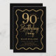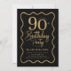 Black gold 90th birthday party invitation. Trendy modern design, perfect for a stylish men's or women's bday celebration. Features wavy border and script font. Customize with your own details. Message me if you need custom age. Printed Zazzle invitations or instant download digital printable template.