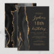 Invitation Black Gold Agate Script Dark 18th Birthday
