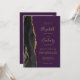 Le bord gauche de cette élégante faire-part de mariage moderne est orné d'une bordure en aquarelle noire ornée d'une parties scintillant en faux or. Le texte personnalisable associe écriture manuscrite dorée, copperplate et polices italiques sur un arrière - plan violet profond. Ajoutez votre photo préférée à l'envers, ainsi qu'un texte supplémentaire et un code QR pour envoyer les invités à votre site mariage.