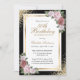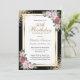 Invitation Black Gold Blush rose Floral 50e anniversaire