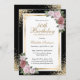 Elégante invitation à fêter des fleurs roses rousses et vertes en noir et or encadrant les détails de la fête d'anniversaire. Invitation à l'anniversaire floral floral. Invitation d'anniversaire blush et or. Invitation d'anniversaire rose et or. Invitation d'anniversaire rose. Invitation d'anniversaire en noir et or. Personnalisez facilement ce modèle à n'importe quelle fête d'anniversaire.