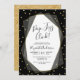 Une invitation élégante et moderne à la Bachelorette Party avec un beau centre géométrique doré entouré de confettis dorés. La couleur de Arrière - plan affichée est noire, mais vous pouvez sélectionner une couleur personnalisée pour correspondre à votre thème d'événement.