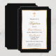 Invitation Black Gold Cross Pois Élégant Script Baptême