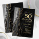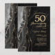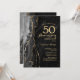 Invitation surprise d'anniversaire de 50 ans en agate noire et dorée. Design moderne élégant avec fond de géode de marbre d'agate à l'aquarelle, or faux pailleté et police de caractères script. Carte d'invitation élégante parfaite pour une fête d'anniversaire de mariage chic. Invitations Zazzle imprimées ou modèle numérique téléchargeable instantanément.