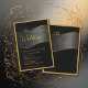 Invitation black gold frame monogram typography wedding