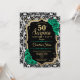 Invitation surprise 50e anniversaire de fête. Design noir féminin, blanc et vert émeraude avec fausse parties scintillant or. Caractéristiques dentelle noir et blanc motif damask, rose, police de script et confetti. Parfait pour une célébration anniversaire féminine élégante. Peut être personnalisé pour montrer n'importe quel âge. Invitations Zazzle imprimées ou téléchargement instantané modèle imprimable numérique.