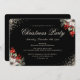 Invitation Black Gold Holly Berries Christmas Holiday Party