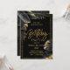 Invitation Black Gold Luxury Tropical Leaf Happy Birthday